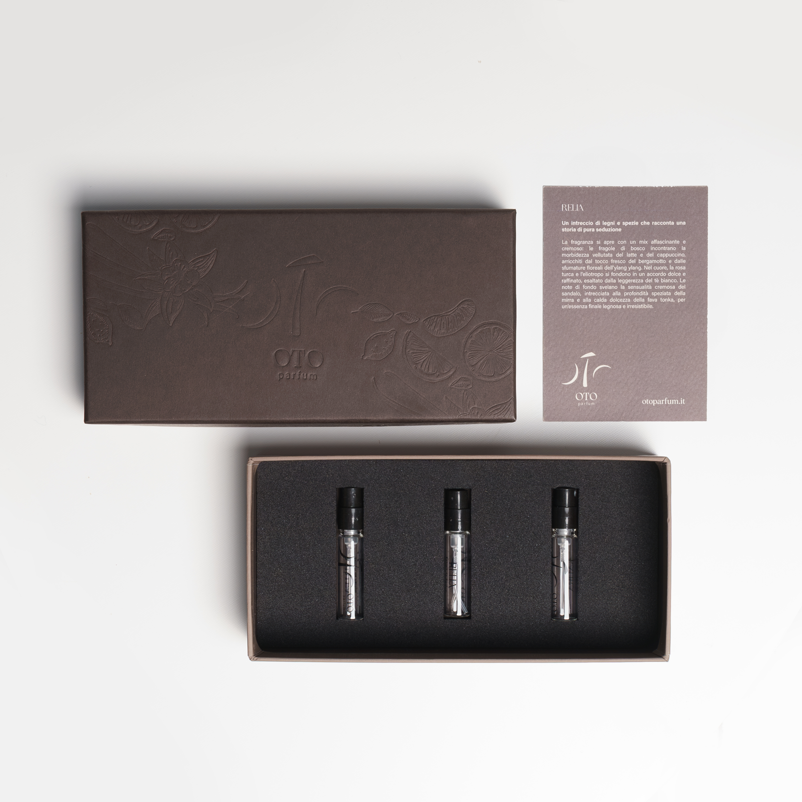 Scopri l'universo sensoriale di OTO Parfum con il nostro Discovery Kit, un'esperienza esclusiva che ti permette di immergerti nelle essenze uniche delle nostre fragranze: Amalea, Relia, e Kalira.